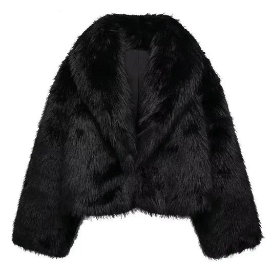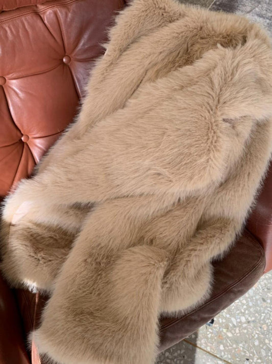 Large Lapel Long sleeve Faux Fur Coat White Khaki