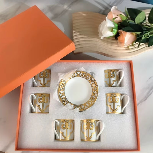 Gold Painted Bone China Coffee Set Porcelain Tea Set