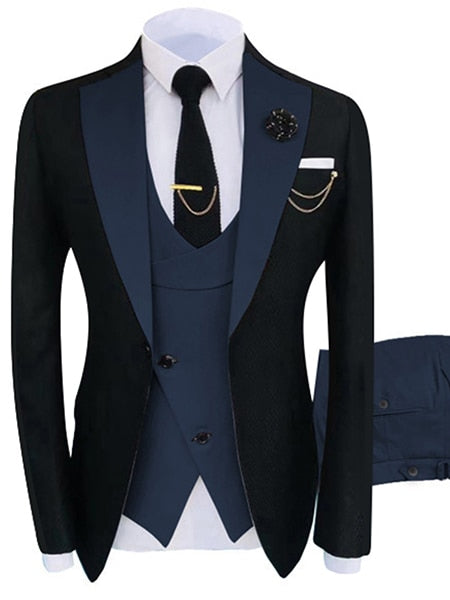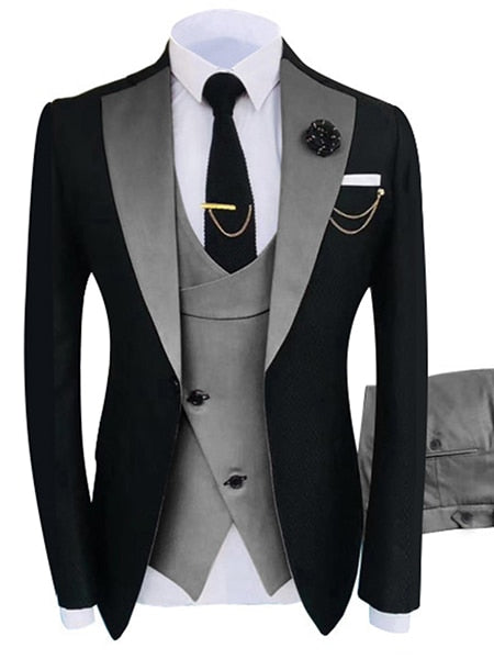 Slim Fit Business 3 Pieces Tuxedos Suit with Jacket Waistcoat and Trousers