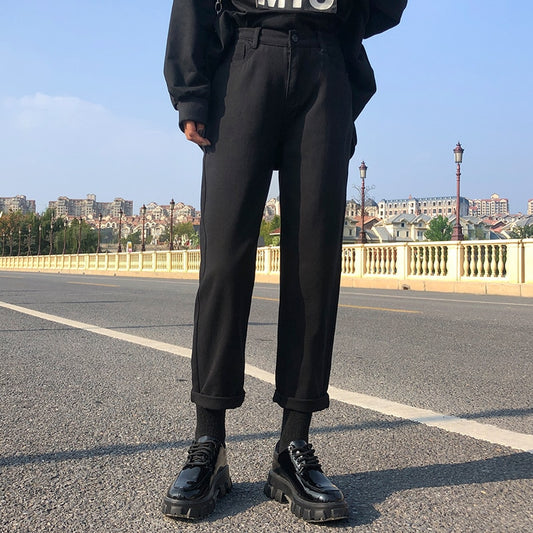 Elastic High Waist Boyfriend Cotton Cargo Jeans