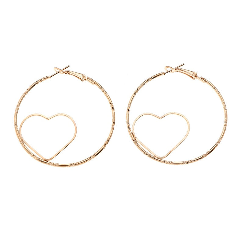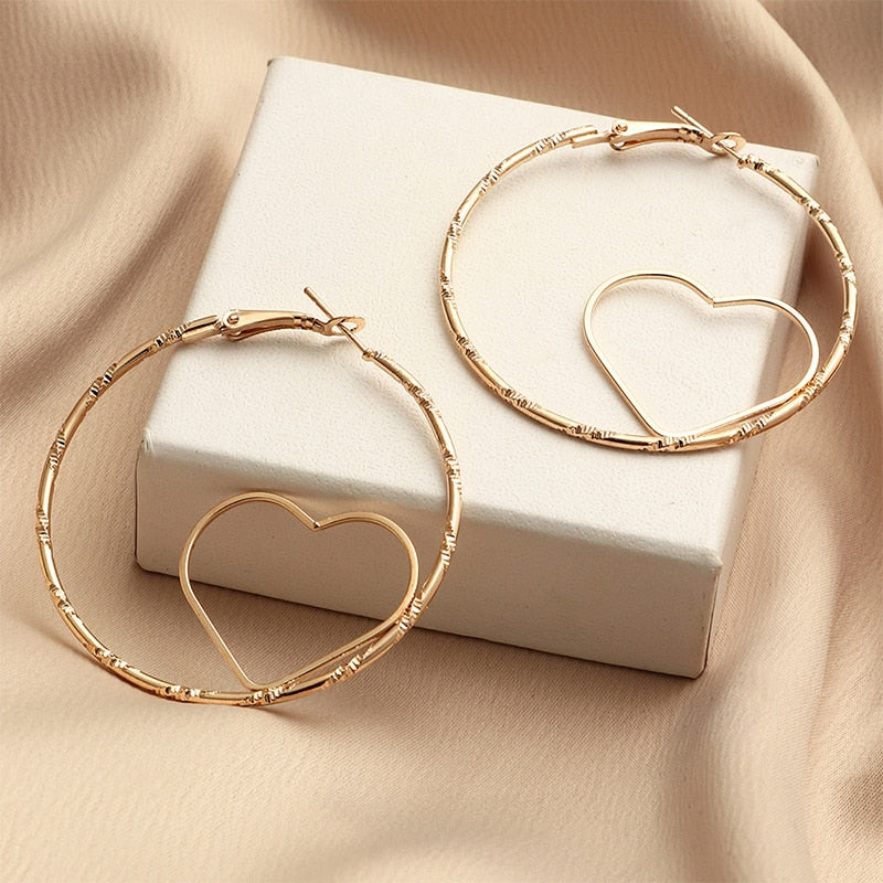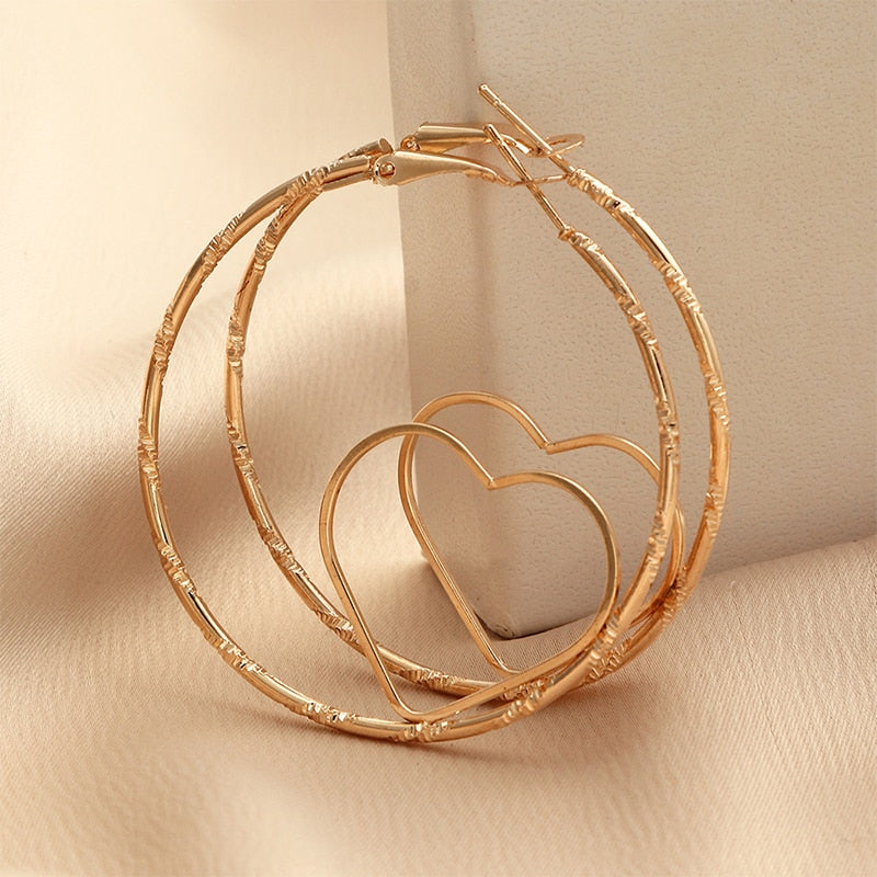 Large Metal Hoop Earrings Gold Heart