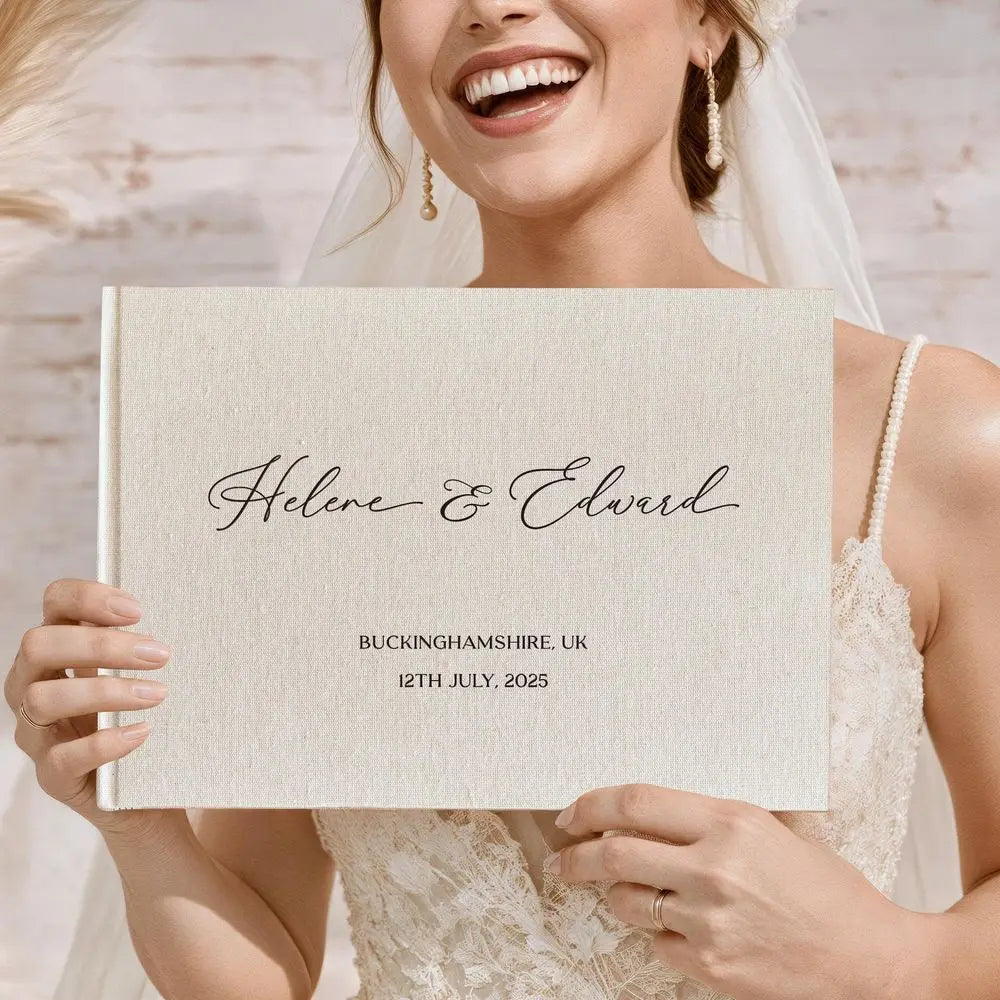 Designed to capture heartfelt messages and treasured memories, this elegant wedding guest book is a timeless keepsake for your special day. Crafted in a classic A4 size measuring 29.2 x 21 cm (11.5 x 8.3 inches), it offers plenty of space for guests to leave signatures, well wishes, and photographs. The durable linen hardcover adds a premium, long-lasting finish while giving the book a refined, minimalist look that complements both modern and traditional wedding themes.