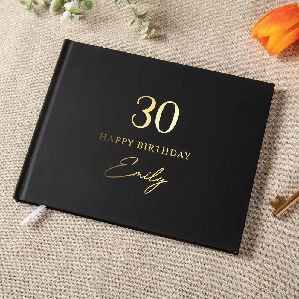 Celebrate life’s biggest milestones with a personalised birthday guest book that captures every message, memory, and well wish in one beautiful keepsake. Available in classic black or white, this elegant sign-in book is perfect for 18th, 30th, 40th, 50th, 60th, 70th, and 80th birthday parties, giving friends and family a special place to leave heartfelt notes for her on the big day. The clean, timeless design complements any party theme, from modern and chic to traditional and glamorous, making it both a stylish decoration and a meaningful memento.