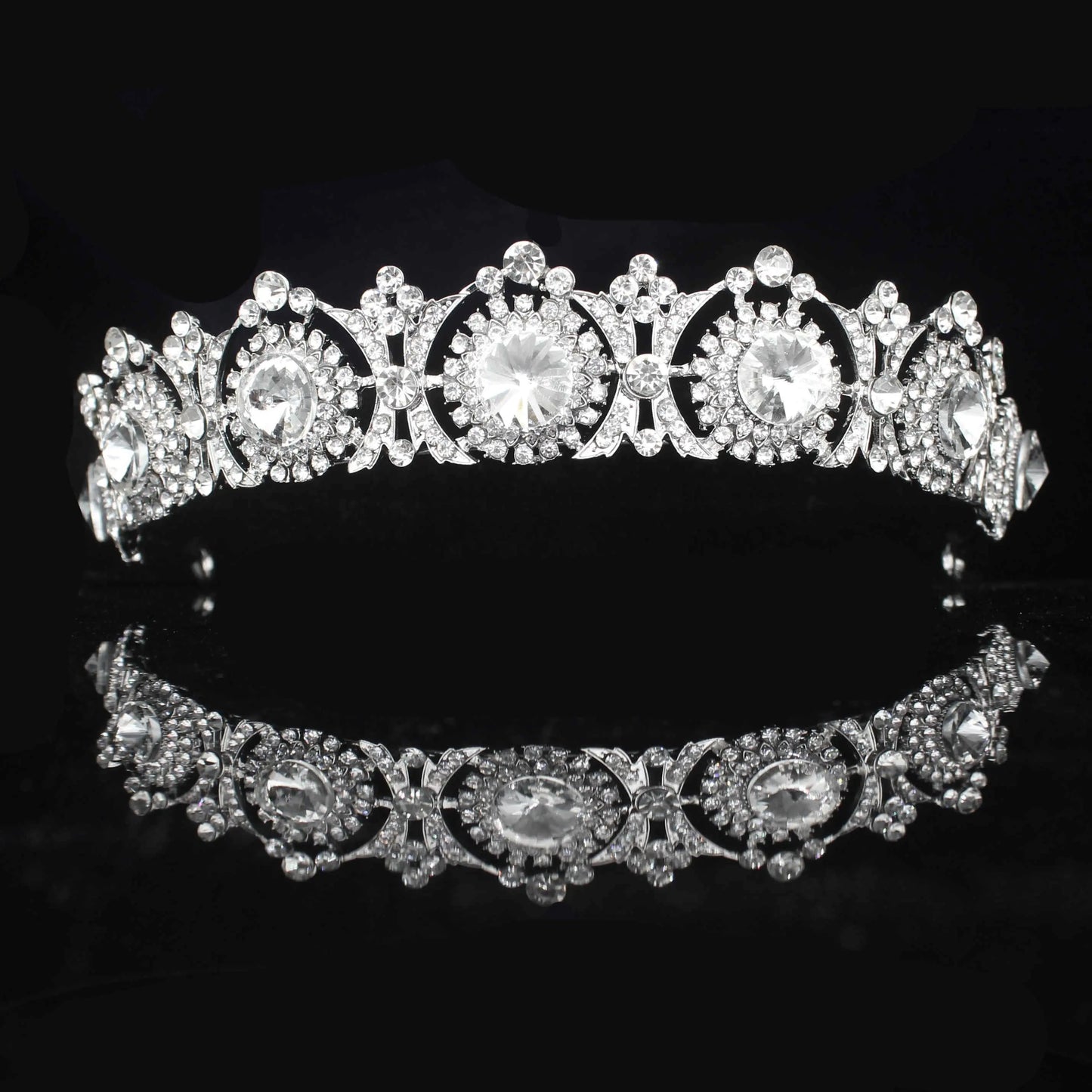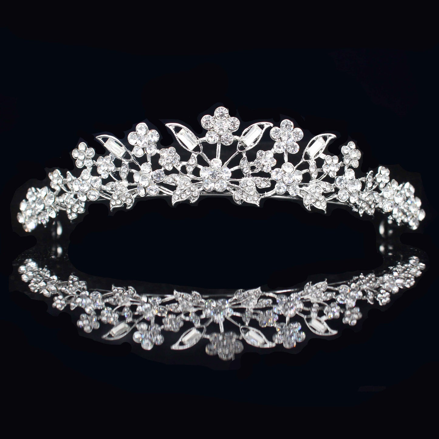 If you're looking for the perfect tiara, these glam pieces add a summertime sparkle to any bride's ceremony. The rhinestone crystal tiara is made from sustainable alloy metals and a variety of sparkling crystals that give any hair accessory a touch of elegance.